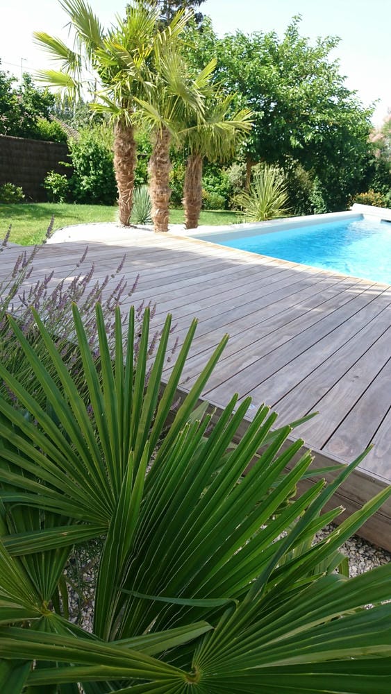 Plage de piscine en bois Kebony® à Antoigné au nord de la Vienne