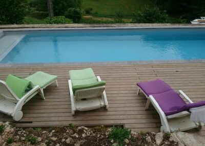 Terrasse plage de piscine et palissade à Cenon sur Vienne