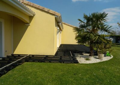 Il n’est pas forcément nécessaire de réaliser une dalle béton pour installer une terrasse en bois. Sur ce projet un simple décaissement suivi d’un fond de forme compacté a permis d’obtenir un sol stable.