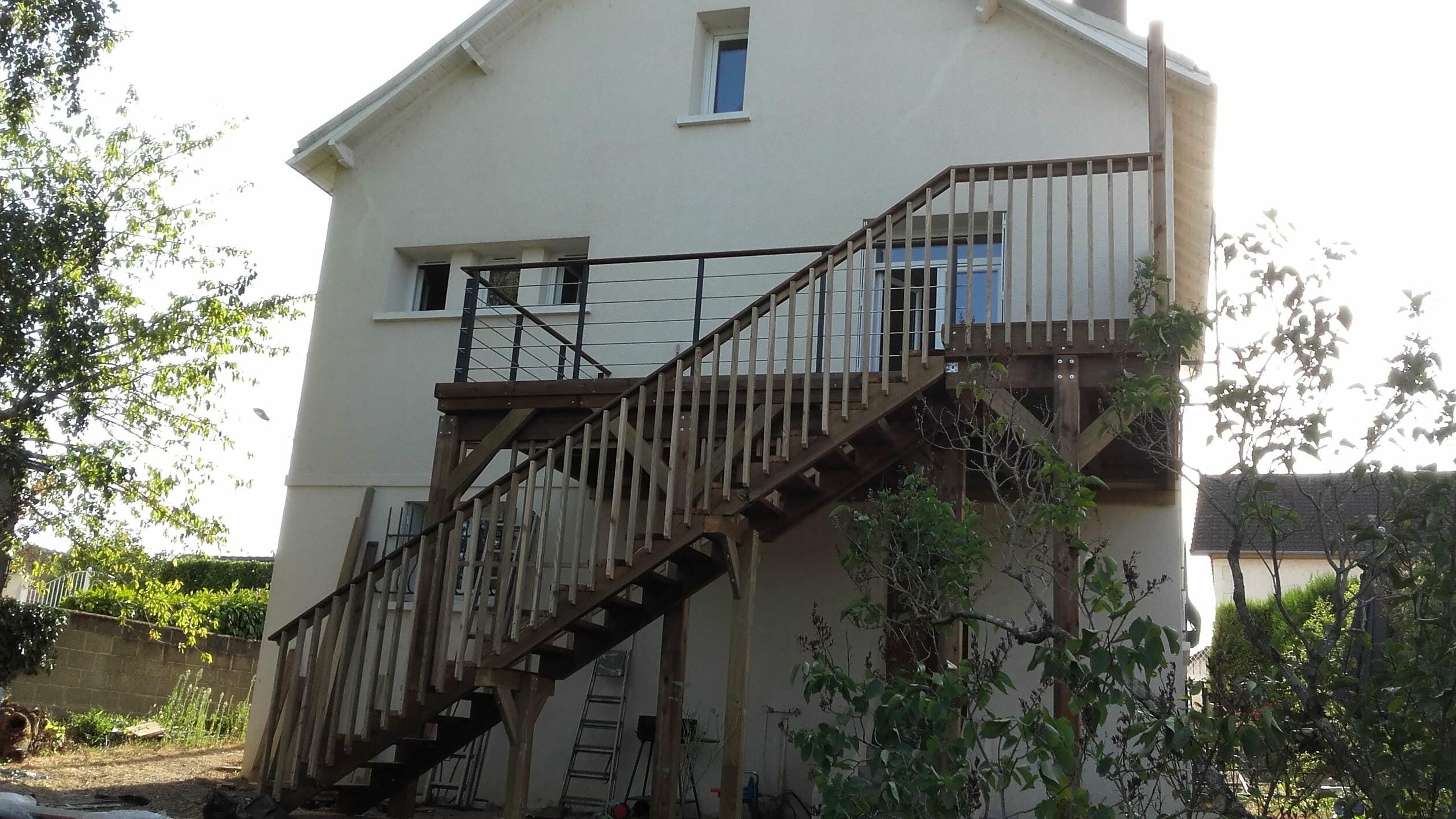A Châtellerault, terrasse en bois sur pilotis avec escalier, garde-corps et pare-vue